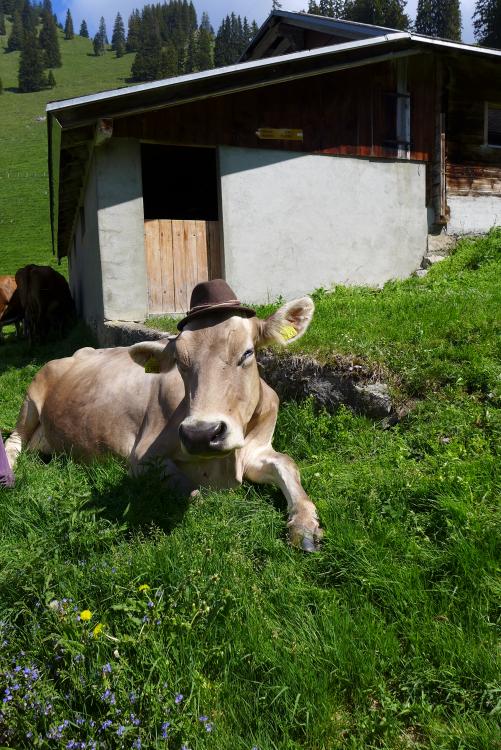 Aber auch den werden wir schaffen. Denn wir wissen, heute Abend geht’s wieder raus, raus auf die Weide, den lauen Sommerabend genießen, liegen, wiederkäuen, ins Tal schauen und dann verabschiedet sich der Tag mit einem Alpenglühen, bevor die Nacht beginnt.